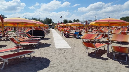 direttamente sul, spiaggia raggiungibile tramite un sottopassaggio, con fondale digradante attrezzata con ombrelloni e lettini a pagamento, nelle vicinanze spiaggia libera, bar